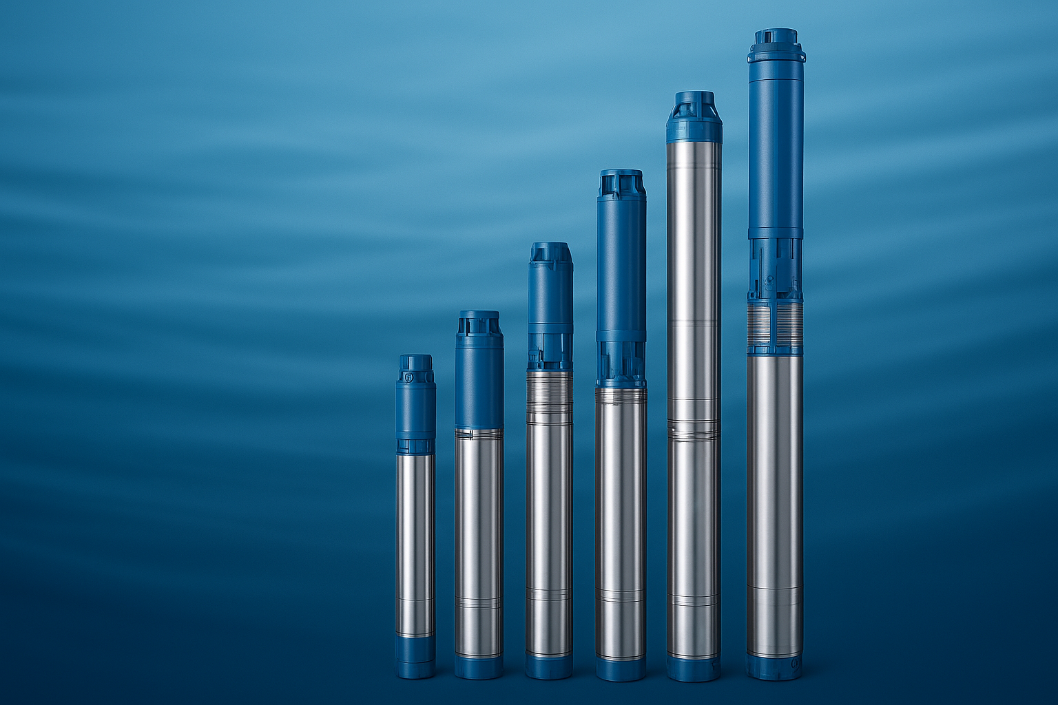 Главное отличие — внешний диаметр корпуса для установки в скважины разного размера. 3-дюймовые модели более компактны и подходят для узких обсадных колонн, а 4-дюймовые часто предлагают более высокую производительность при схожей цене.